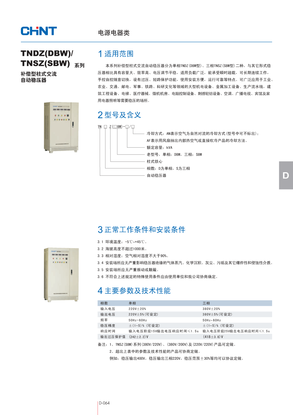 TNDZ(DBW)-180,TNDZ(DBW)-200系列补偿型柱式交流自动稳压器,正泰集团CHINT国内一级代理