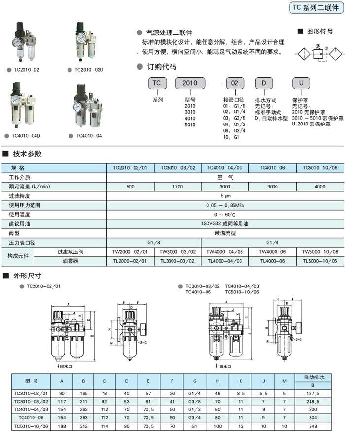 TC2010-02U,STNC气源处理元件,TC系列二联件